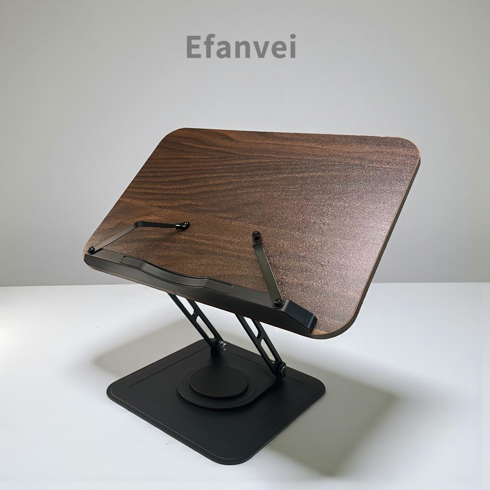 『實木旋轉閱讀支架』【Efanvei】實木 胡桃木色 金屬 手機支架 書架 平板支架 可旋轉 摺疊收納 多用途 底座